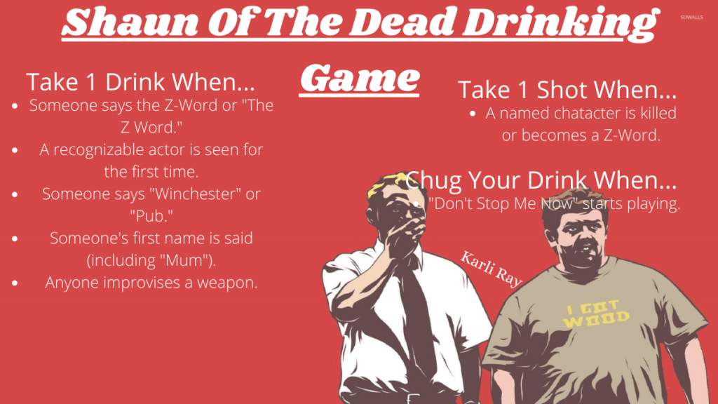(Rules By: http://www.frenchtoastsunday.com/2015/02/drinking-game-shaun-of-the-dead.html)