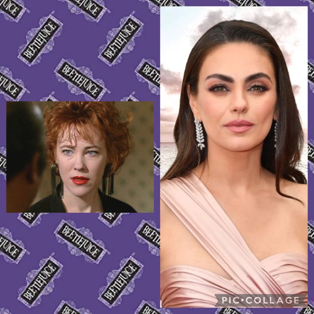 Welcome to Day 12 of Spooky Season!! For this year, I asked one of my favorite horror movie groups, Room 237, to help me choose 2 movies for my remake series. The first one they chose was Beetlejuice! This one made me very nervous because Beetlejuice had so many iconic performances that I’m not sure could be matched… but I’m still pretty happy with my choices and I hope you enjoy them too! (NOTE: Annie McEnroe’s age wasn’t available, so I had to guess the age range for her character, Jane Butterfield.) (REMINDER: this is just hypothetical fun! I love and respect everyone mentioned and this series isn’t meant to tear anyone down or be disrespectful!!)