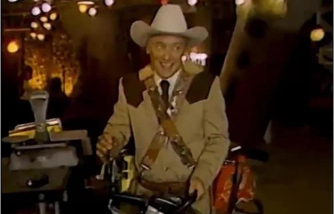 - In the Sawyer family’s lair, a skeleton is seen hanging from the ceiling. It’s riding a bomb and waving a cowboy hat above its head. This is an homage to the end of the film Dr. Strangelove Or: How I Learned To Stop Worrying And Love The Bomb.