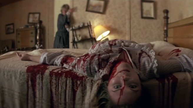 Eager for peaceful study sessions with no distractions, best friends, Marie (Cécile de France) and Alex (Maïwenn) traveled to Alex’s isolated family farm. That isolation brought anything but peace as Alex and her family were targeted by a sick psycho (Philippe Nahon). After Alex’s father (Andrei Finti) was murdered at the front door, Marie snuck around the house to find a phone to call for help. After hearing some noise coming towards her, she quickly hid in the nearby closet. Through the slats, she saw Alex’s mom (Oana Pallea) stumble in, holding the phone, trying to call for help. Then, the killer walked in and slit her throat. Then, to add more misery, the killer cut off her hand. She still wasn’t dead when Marie tried to help her. This poor woman suffered so much. I tell you, the way blood poured out of her throat with every breath she took is forever instilled in my mind, and so is the moment when she stared right at Marie through the closet slats. It was actually my first impression of this film as I saw this scene in a horror compilation years ago, and it’s still an unforgettable scene!