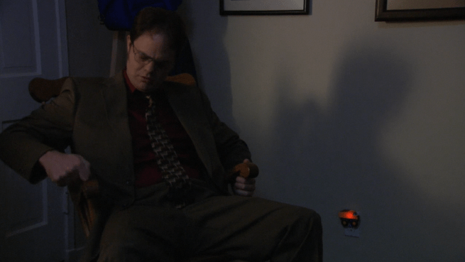 David (Andy Buckley) realized Dwight (Rainn Wilson) snuck into his kid’s room while he was sleeping.