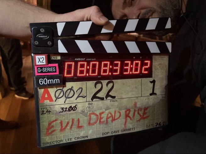 Welcome back to Behind The Scenes Saturday!! I’m sorry I haven’t posted one of these in a while, but I wasn’t feeling particularly inspired. Today is dedicated to one of my go-to horror movies, Evil Dead Rise! With its combination of scares, laughs, and shocks, this film became an instant favorite of mine. So, be sure to keep the door locked, don’t turn your back on a dead body, and enjoy these fun pictures and bits of trivia!!